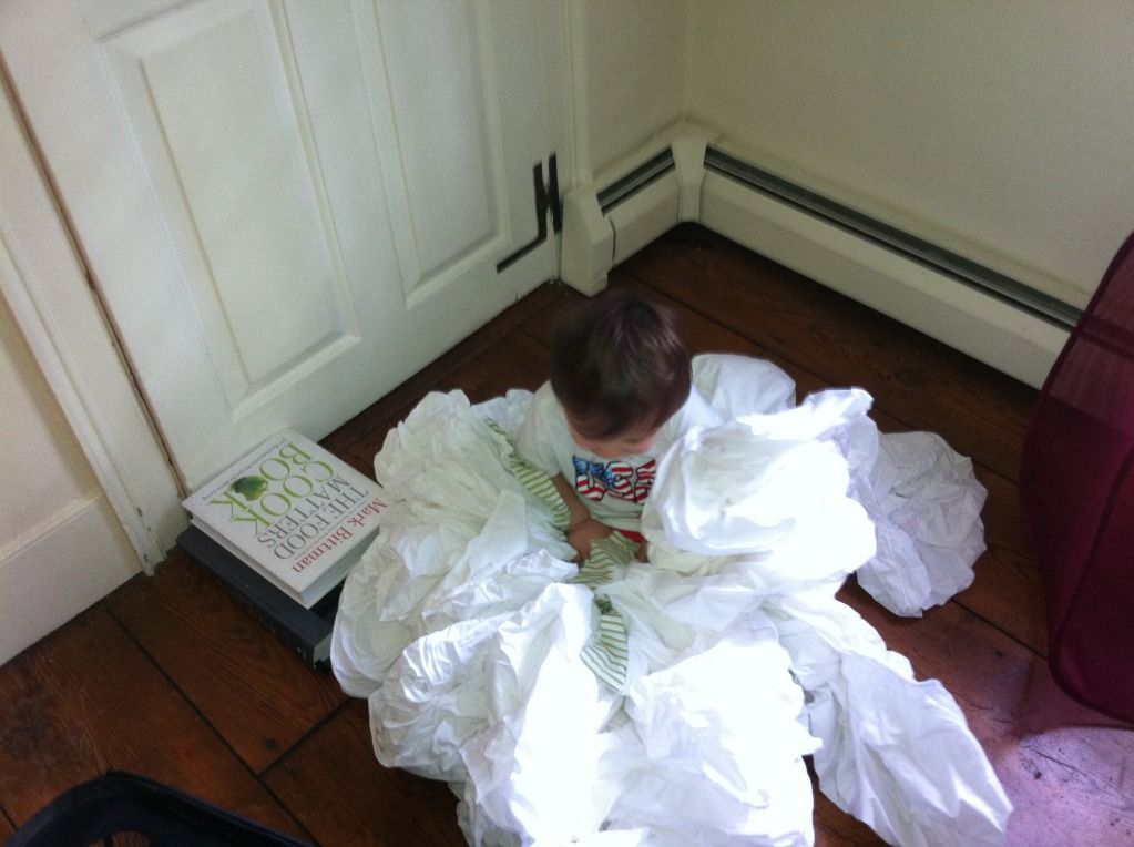 Cute moments: He has become very snuggley over the past two weeks, constantly climbing into my lap and sitting while we look at a book or toy. He "cleans off bubbles" in the bathtub if they are on his book and wiping and dipping his hand back into the bathwater until all the bubbles are gone. He even walks up to me, grabs my hand, and leads my around the room. He's growing up so fast but I am loving every new discovery he is making.